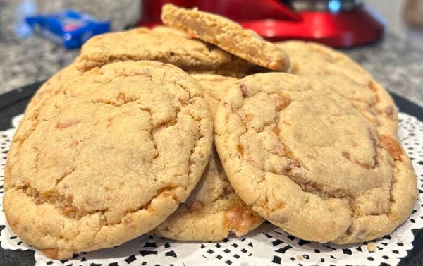 Large, soft, and chewy cookies filled with pieces of butterfinger chips.